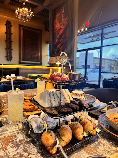 Offering a diverse menu of Halal cuisine, complemented by premium Hookah selections, in a setting that blends chic indoor spaces with inviting outdoor patios. Our stylish decor ensures a refined yet inviting ambiance for any occasion.